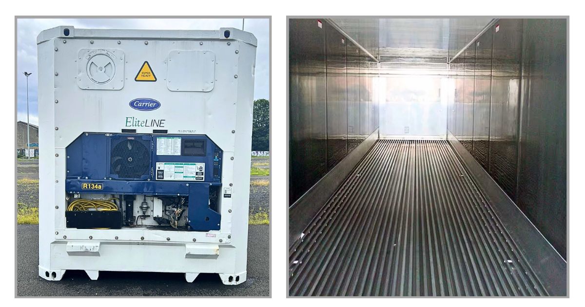 - Dung tích chứa hàng: ~72–75 m³ (RF) / ~80–83 m³ (HC), lớn hơn container lạnh 40 feet, phù hợp pallet cao và hàng khối lượng lớn